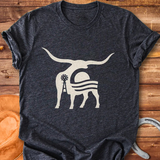 Windmill Plains Longhorn Cattle Art T-Shirt