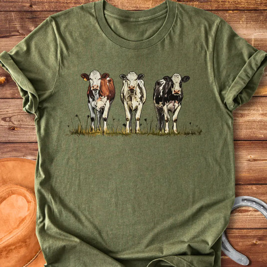 Pastoral Trio Cow Illustration T-Shirt